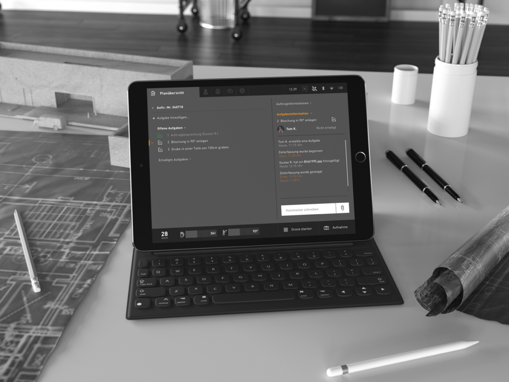 Arbeits-Tablet einsehen und bearbeiten. Plandaten und Aufträge, die er durch den